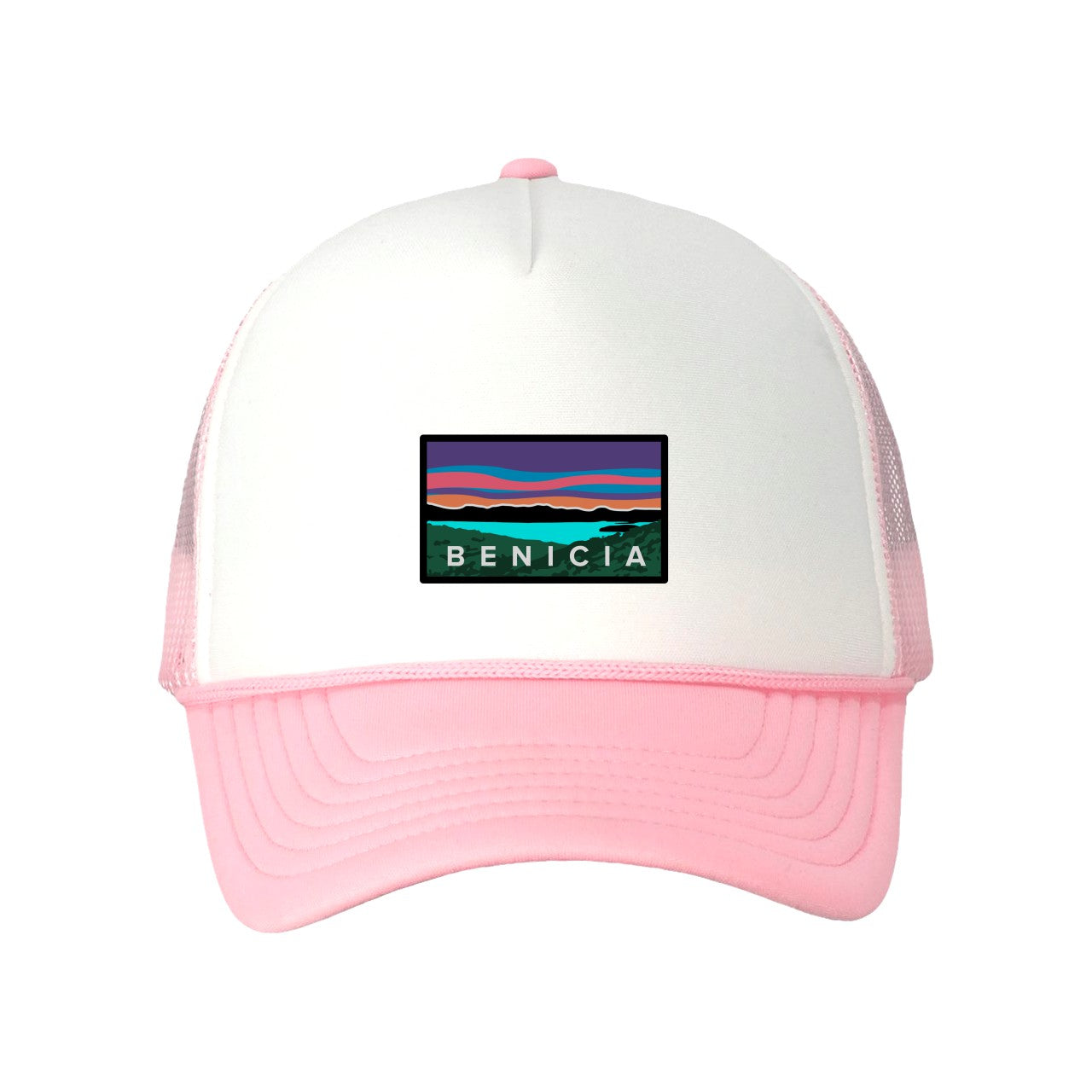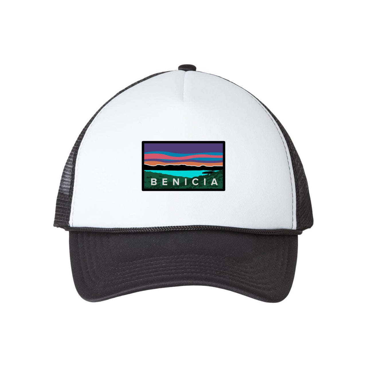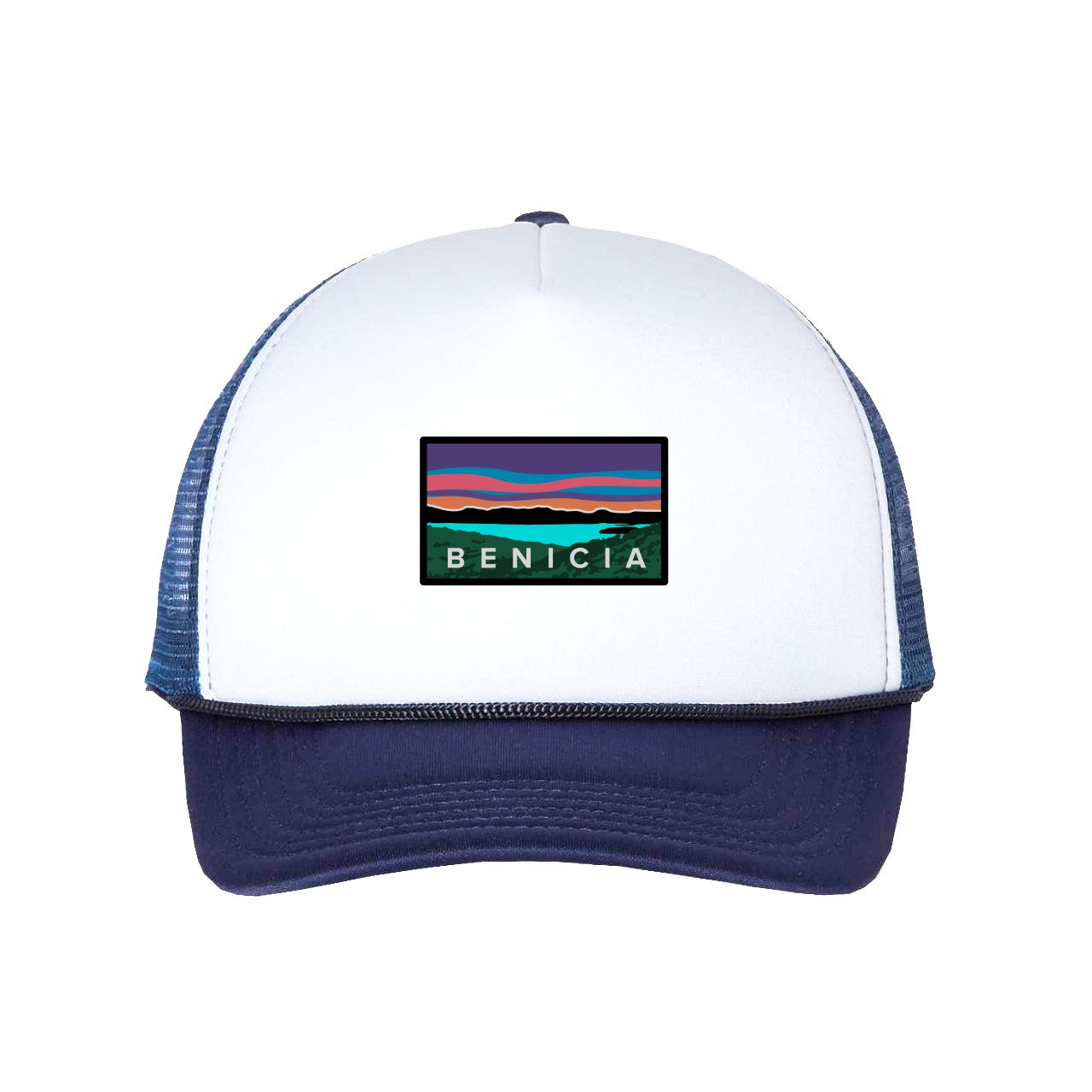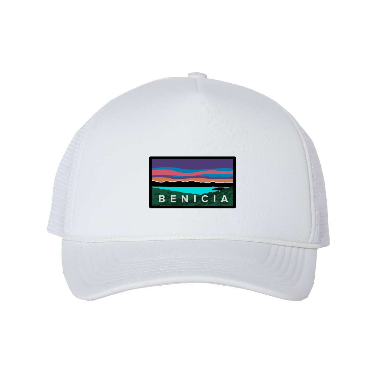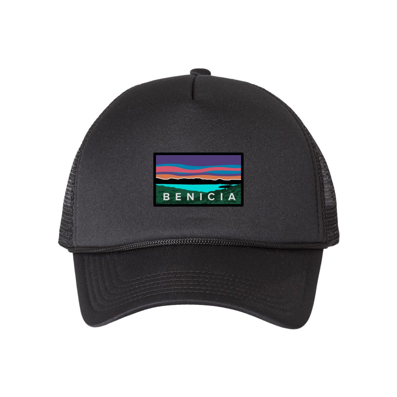 Foam Mesh-Back Trucker Cap - with a sewn-on woven patch of your design. Customize with any design - your logo or give us your concept and let us come up with the design for you - no setup fee! We can even create a custom sunset skyline for your region or a graphic for your state. All patch sizes are the same price. Split the patch minimum of 48 across hat styles by 12 per SKU.