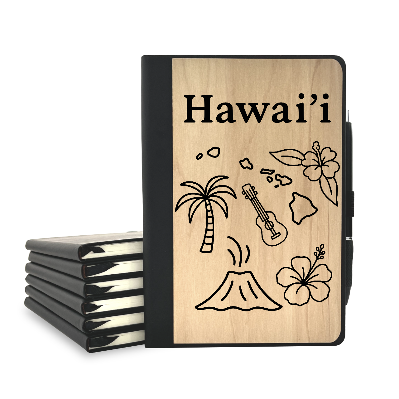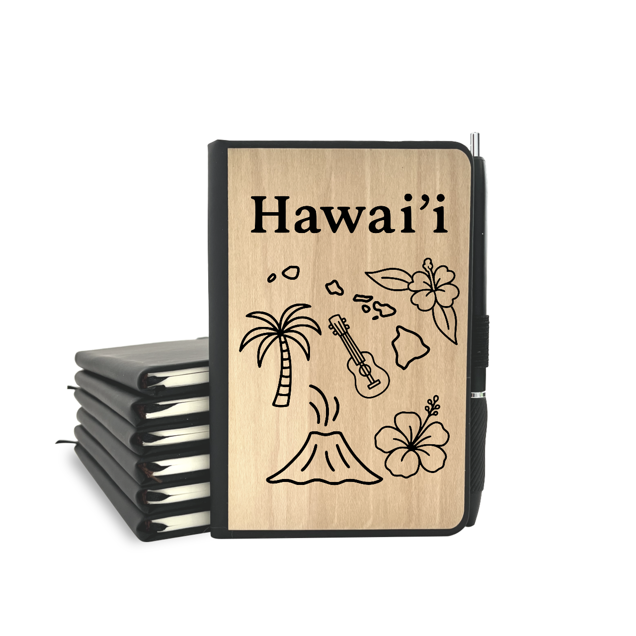 The Hawai'i Journal has a durable wood veneer cover with a classic design.