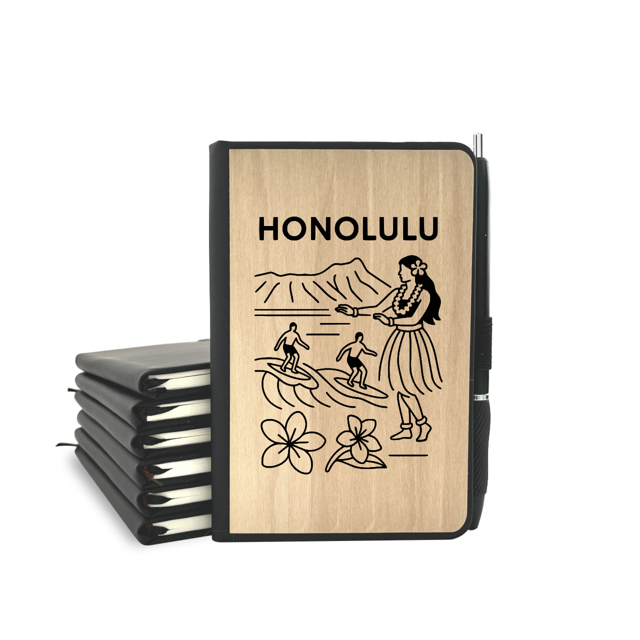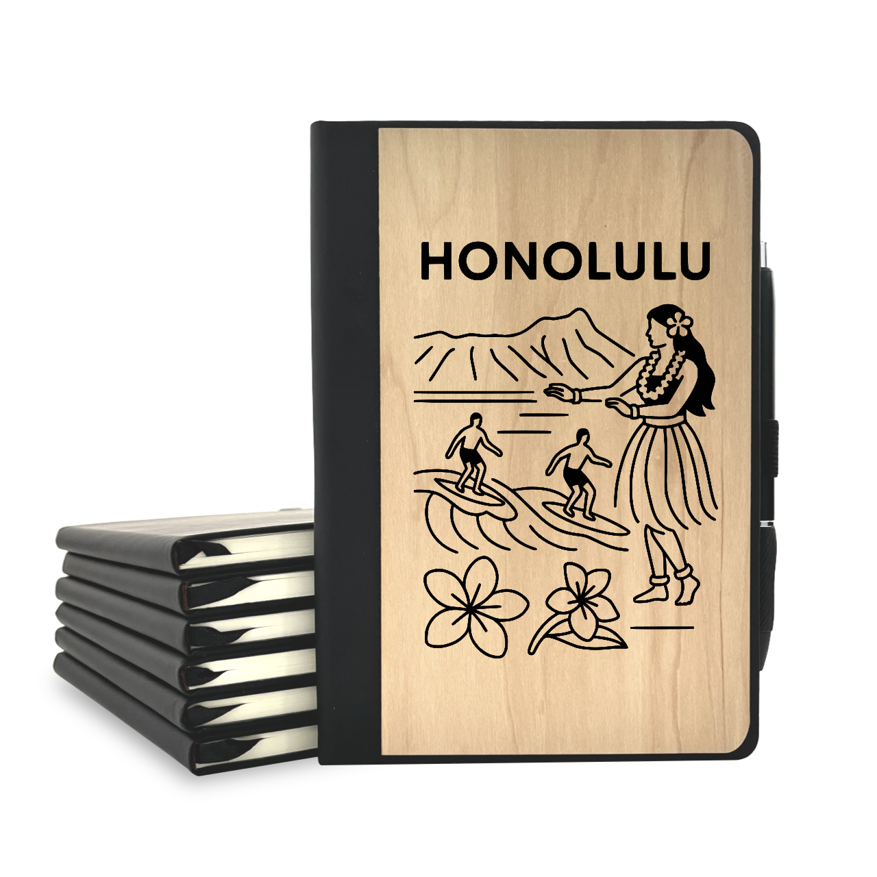 The Honolulu Journal has a durable wood veneer cover with a classic design.