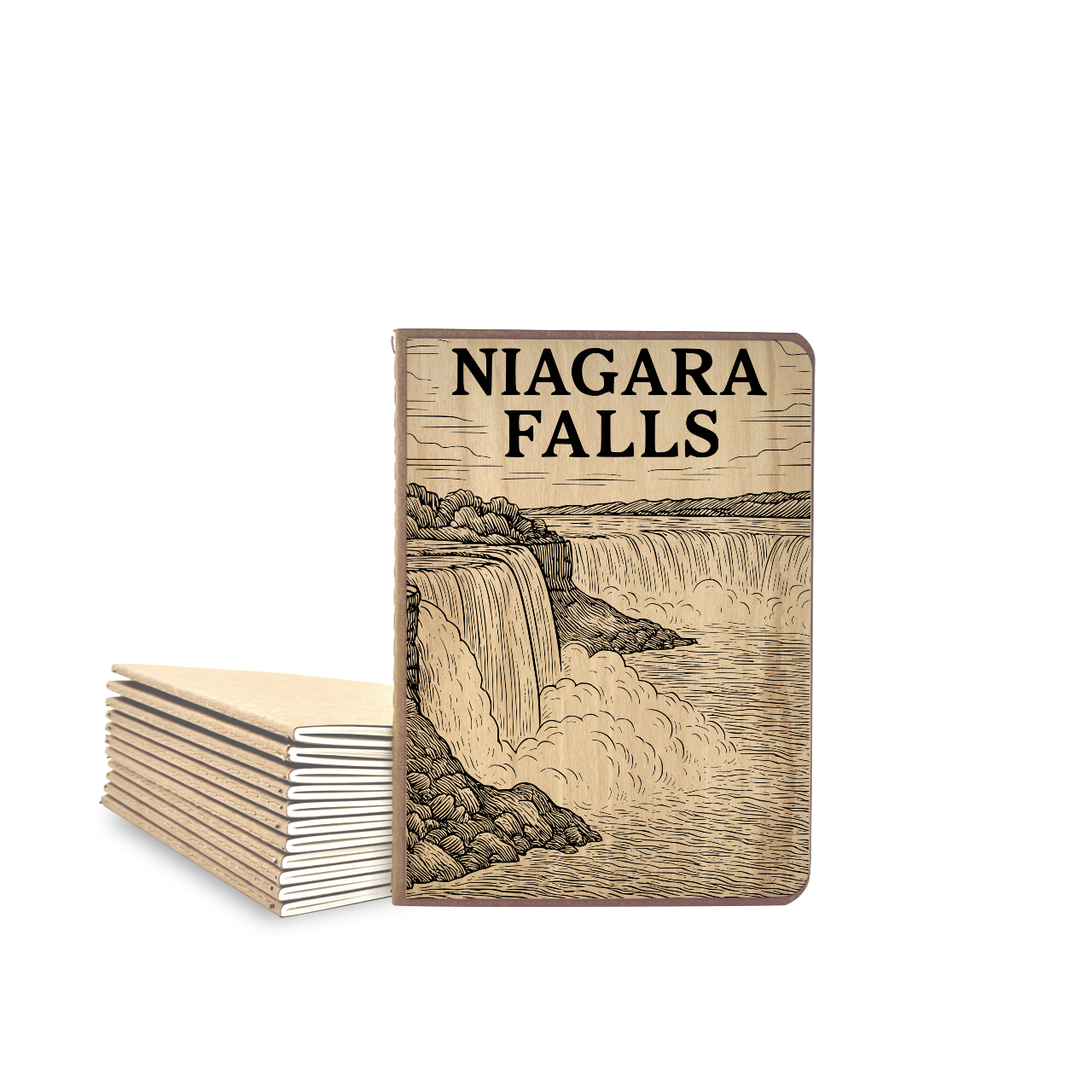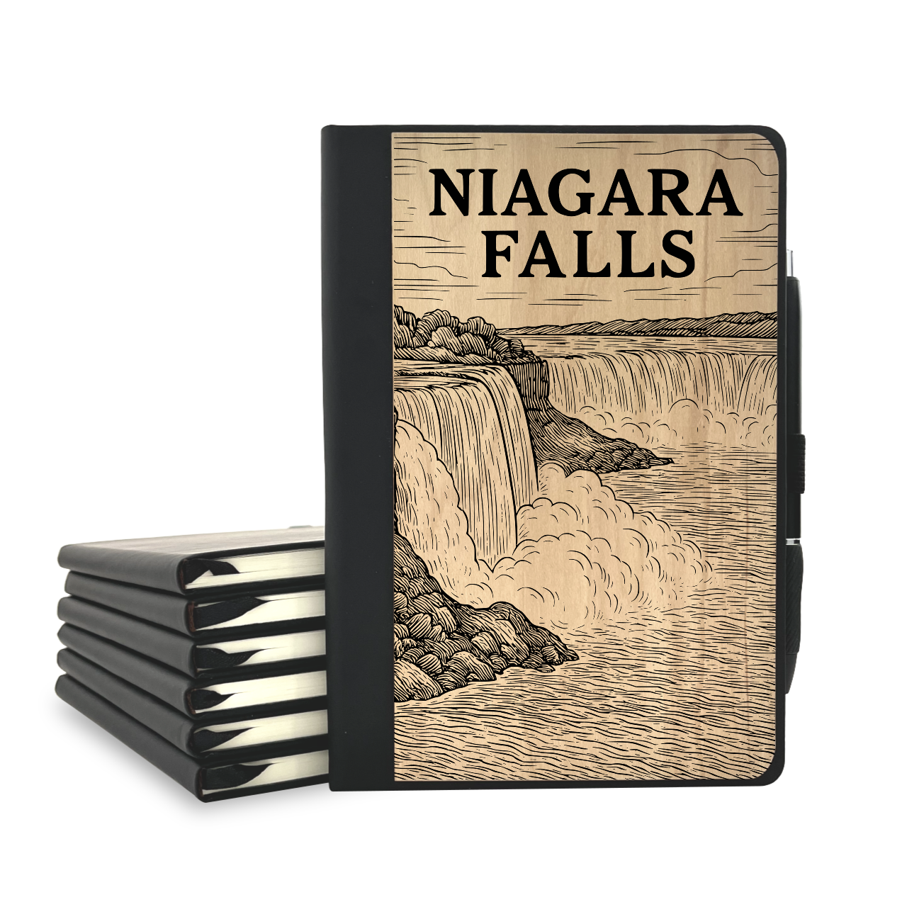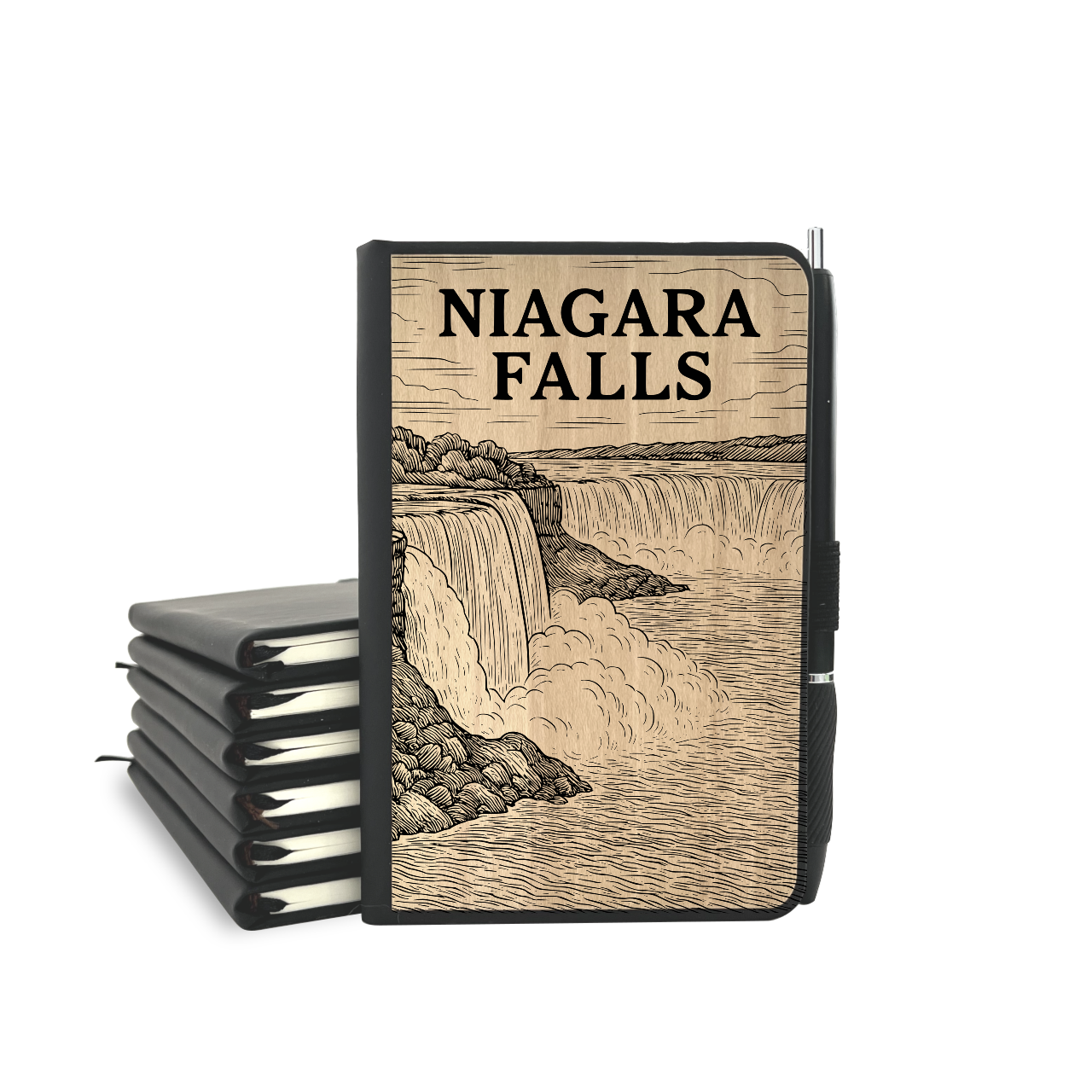 The Niagra Falls Journal has a durable wood veneer cover with a classic design.