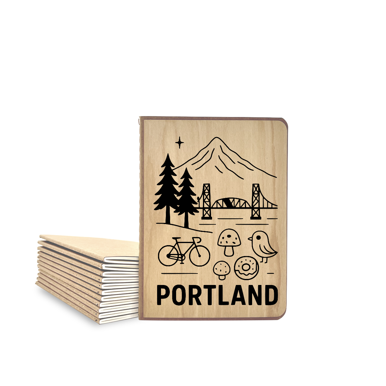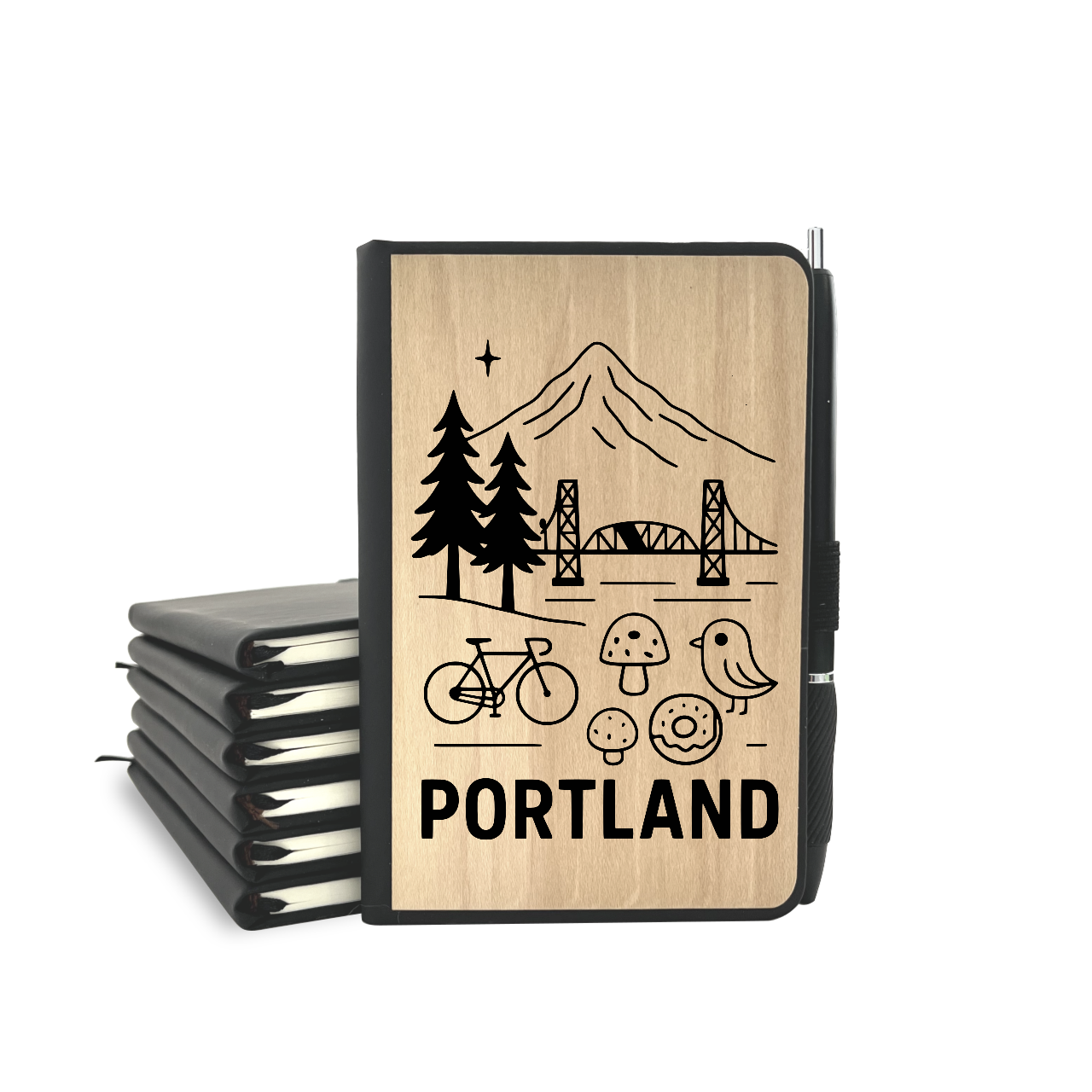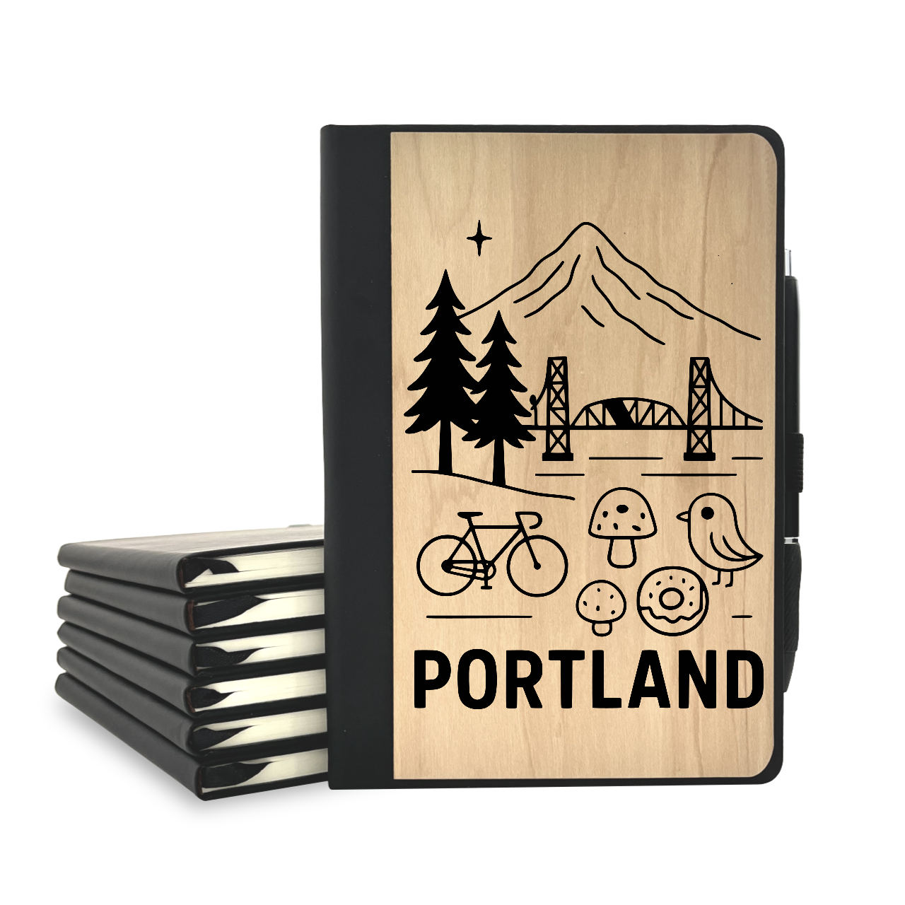 The Portland Journal has a durable wood veneer cover with a classic design.