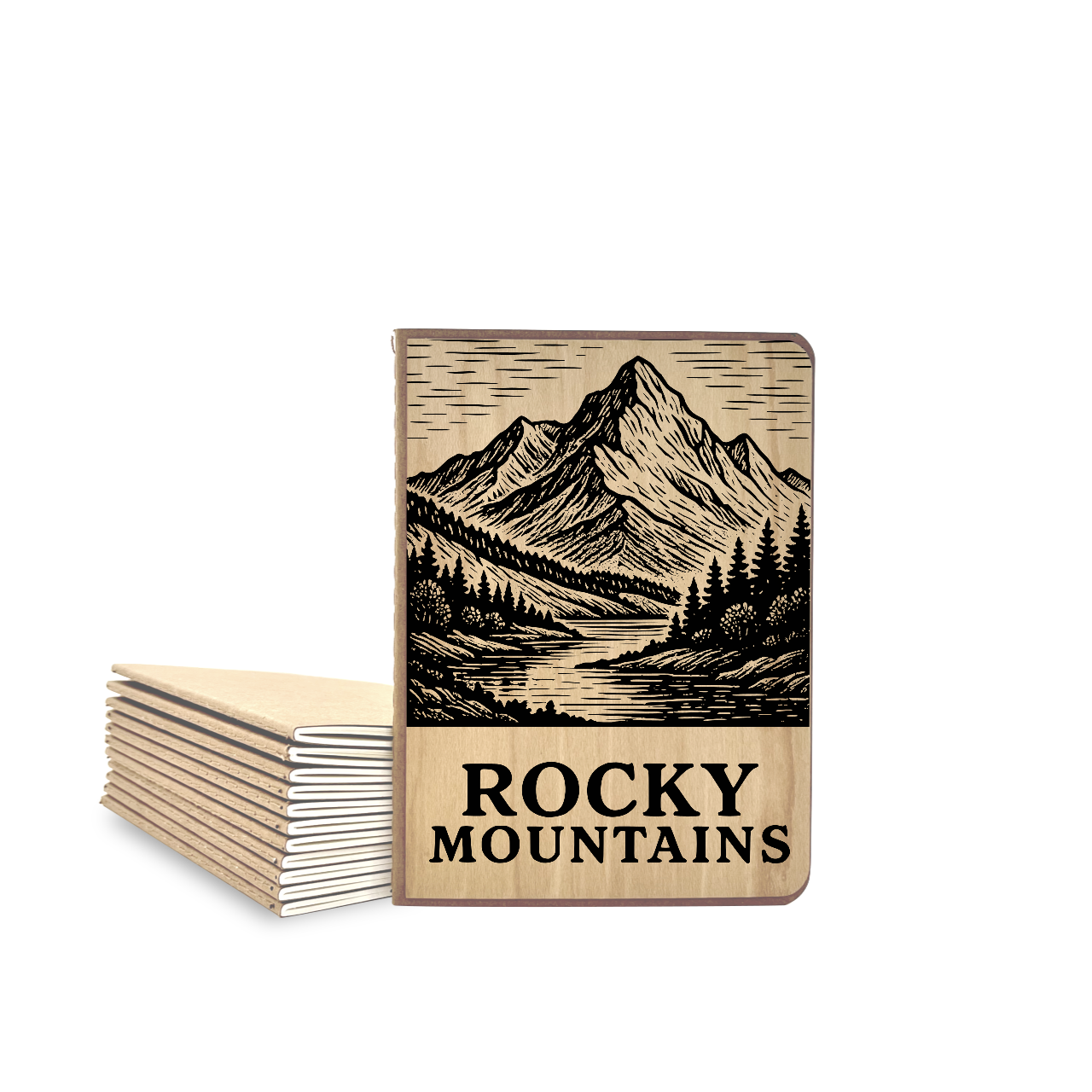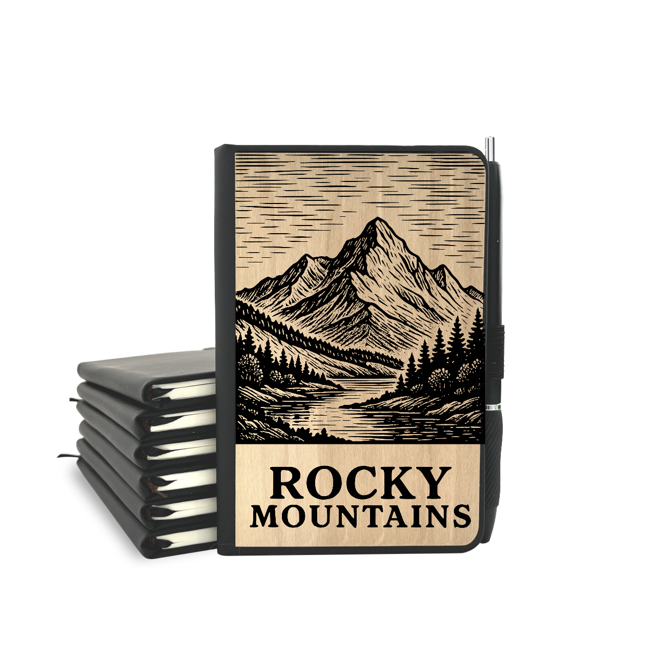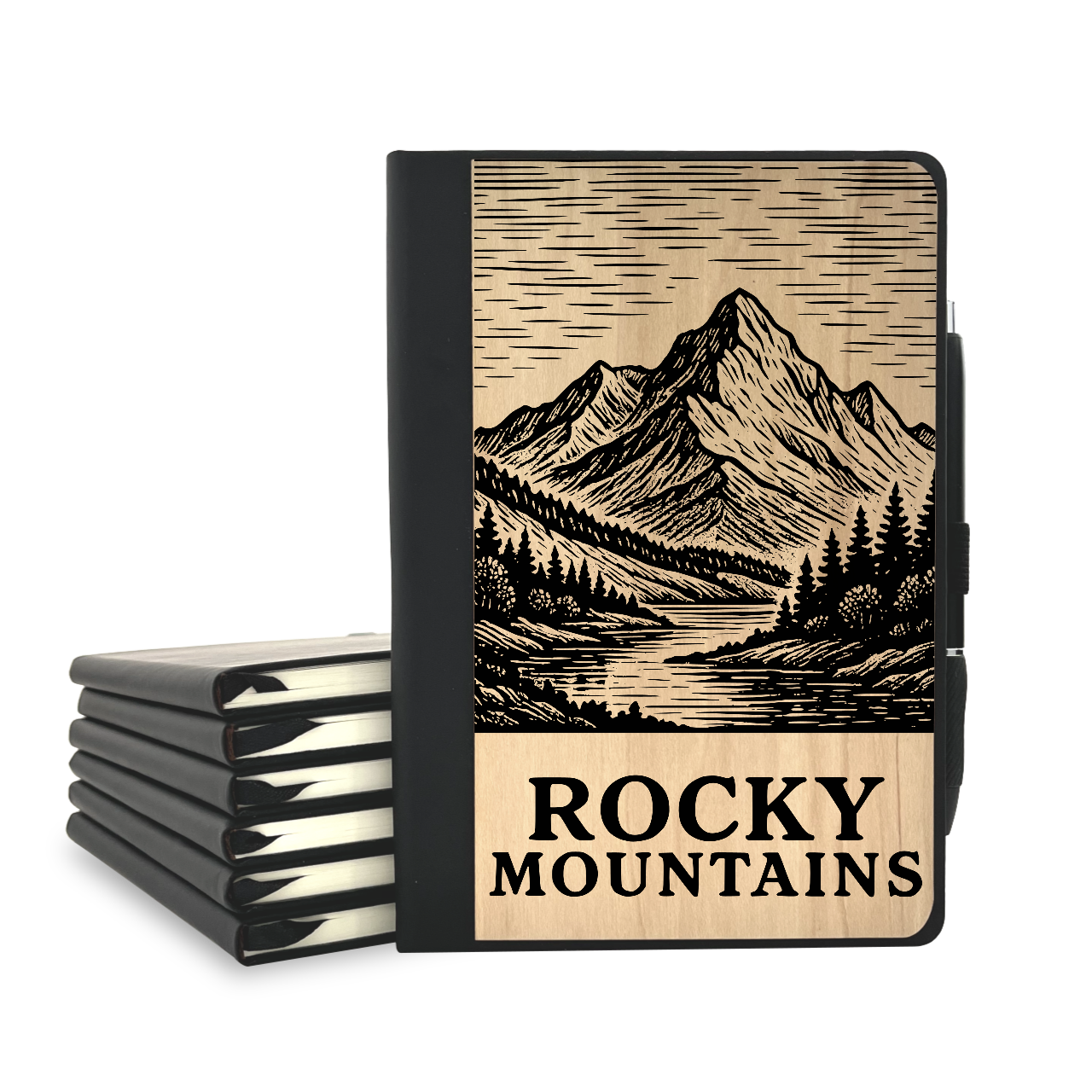 The Rocky Mountain Journal has a durable wood veneer cover with a classic design.